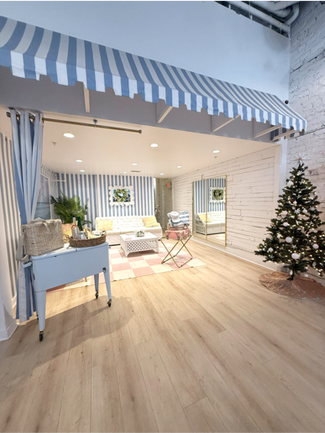 The two story property serves as ground floor retail/ showroom space for the brand, with the second floor serving as an event space, equipped with a bar and patio.