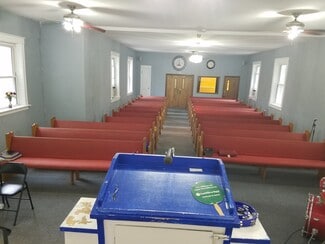 This versatile property offers a unique opportunity for organizations seeking a functional and adaptable space. The building spans approximately 4,800 square feet and is thoughtfully designed with a sanctuary and offices on the main level, complemented by classrooms, a kitchen, a fellowship hall, and multiple bathrooms on the lower level. The sanctuary accommodates seating for about 100, making it suitable for worship services, community gatherings, or educational programs.