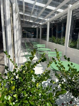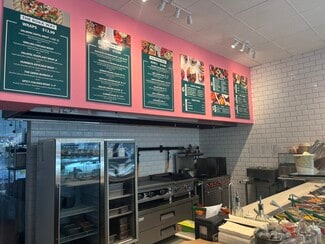 • This is a sun-filled corner space with a full build-out and commercial kitchen.