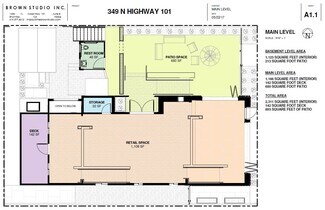 Dual level creative retail/office space located in the original commercial district of Solana Beach. Exceptional exposure along historic Hwy 101 with good pedestrian foot traffic. This unique mini-campus style property features a large outside patio at the street level that can accommodate various types of events, displays, etc. Ideally suited for a design/retail user, a startup tech company, or a professional office user. Total SqFt 2,311. Monthly rent $8,500. Modified gross lease. Main level approximately 1,114 sq. ft. and second level approximately 845 sq. ft. not including a second level detached office approximately 97 sq. ft.