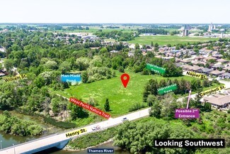 Centrally located 8.5-acre development parcel in the welcoming West Perth community of Mitchell. At least 4.5 developable acres, subject to an EIS to be completed by Buyer at time of planning applications. Potential reduction of manmade pond to be assessed as part of such EIS. 5 concept plans in place by the Sellers' consultant for a mix of 8 single family lots, 28 bungalow townhouse units, 72-80 stacked townhouse units, or a 6-storey, 94-unit apartment building. New concept/site plans could be developed by Buyer at time of planning applications. Relatively short term development window is possible. Roughly $200,000 has already been spent by the Sellers on bringing utilities (except hydro) to the Napier Street lot line. Sanitary sewers are readily connectable. Support from the Municipality of a possible second entrance to this parcel via Henry Street.