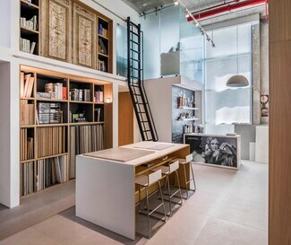 Private stairs lead to the office, providing a sense of exclusivity and convenience.