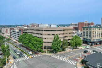 350 Main Street is one of Malden, Massachusetts’s most prestigious professional office buildings. Centrally located in the heart of downtown at the prominent corner of Main Street and Centre Street, the property contains over 152,000 square feet across six floors. Interior spaces receive abundant natural light throughout the workday and access an attractive portfolio of on-site amenities, including covered parking, a full-service café, a well-equipped fitness center, and a new double-height lobby.