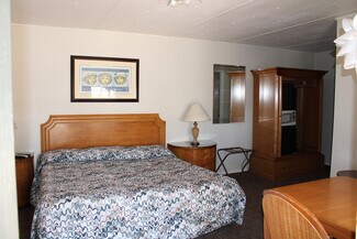The Atomic Inn at 300 & 350 South First Street in Beatty, Nevada, is a 54 room hotel with additional RV stalls and renovated rooms including new paint, flooring, and appliances. The hotel was originally constructed in 1980 to accommodate defense contractors and military personnel working with the Ford Aerospace Corporation who worked at the nearby Nellis Air Force Base and continues to cater to the mining and military contractors in the area.