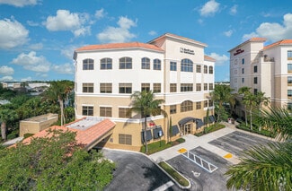 Building amenities include recently upgraded contemporary lobbies, lush landscaping, ample free parking, and vehicle charging stations. Office suites can feature high-end finishes, private terraces, kitchenettes, hurricane-rated impact glass, and fiber optics.