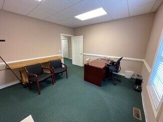 First floor office space available in brick building located in an established office park. The space provides one private office and a large space for additional employees. There are also the following communal areas: reception area, waiting area, conference room and kitchen. The office was previously occupied by a financial services company. Additionally, there is ample on-site parking within the office park.