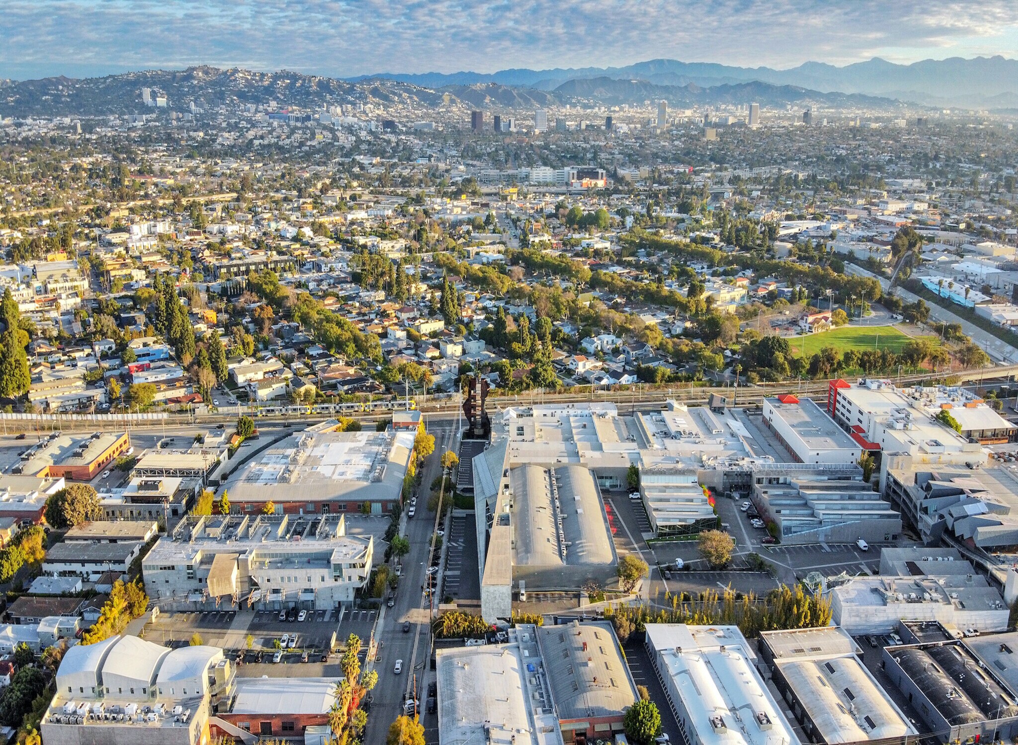 Prominent three-story creative office building located in Conjunctive Points, developed by Samitaur Constructs (Frederick and Laurie Smith) and designed by Eric Owen Moss Architects. Walking distance to Expo Light Rail station and numerous restaurant amenities.