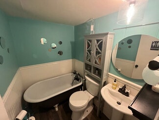 The existing structure, built in 1910, sits on a 0.14-acre lot with ten dedicated parking spaces, providing immediate functionality for an owner-occupant. Current tenancy generates $27,900 in annual income with $1,200 annual increases, offering cash flow potential while planning future use. The lease runs through April 2028, creating a stable short-term revenue stream.