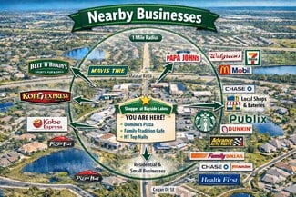 Shoppes of Bayside Lakes 3555 Bayside lake blvd Palm Bay Fl 32909 Neighborhood Shopping Center Shoppes of Bayside is in the heart of Bayside Lakes The corner unit is 1300 sy ft in a active 8 Unit strip mall surround by established Retail stores