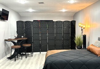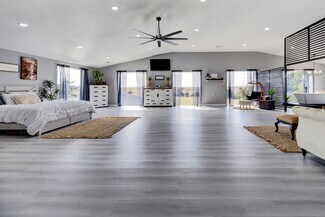 The home’s open-concept design is highlighted by 20' ceilings, creating a spacious and inviting atmosphere. The living room features a cozy fireplace, adding warmth and charm to the space, while the custom bar area is equipped with all the essentials for entertaining, making it a standout feature for gatherings. With 3 bedrooms downstairs and 2 bedrooms upstairs, including a lavish primary suite, this home is designed for both comfort and versatility. The primary suite is a true retreat, featuring a private balcony, a custom tub in the ensuite bathroom, and over 1,200 sq ft of luxurious living space.