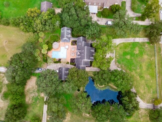 Discover this stunning equestrian estate at 3577 Katy Hockley Rd, Katy, TX, showcasing 20.5 acres of serene country living with a refined sophistication we all love. This two-story home, nestled among mature oak trees and lush pastures, feels like a peaceful retreat with timeless charm. The expansive grounds feature rustic horse barns, fenced pastures, and a tranquil pond—perfect for any equestrian enthusiast. You’ll enjoy a sparkling pool with a pool house for some great outdoor relaxation, plus scenic paths leading to the barns. There’s even an apartment above the three-car detached garage, ideal for guests or extra space. With ample room for recreation or future expansion, this property blends privacy and convenience, including a private automatic gate granting secure access to a circular driveway. It’s just minutes from I-10, TX-99, and Katy’s premier shopping and dining. A rare 20.47-acre retreat—perfect for discerning equestrian lovers seeking to personalize their dream estate!