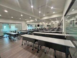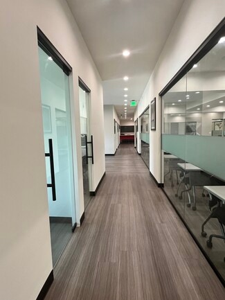 Newly built out trophy property featuring 5,500 square feet of creative office space with a welcoming reception waiting area, nine (9) well-lit private offices, a conference room, four restrooms with two that are ADA compliant, an open concept kitchen with a peninsula, an open bull pen area, and massive training or assembly room. The space features floor to ceiling glass walls, glass doors, windows permeating natural light within each of the private offices and conference room, recessed lighting throughout, smart lock entry, smart thermostat, EV charger and modern flooring and finishes. The suite is offered either furnished or unfurnished on a modified gross lease. Tenant is responsible for its own electrical and janitorial services. Property has an alarm system installed which can be transferred to tenant.