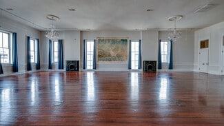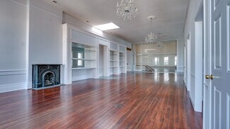 The historic character of the building has been preserved with eight decorative fireplaces, original hardwood floors, and soaring ceilings, while large windows flood the space with abundant natural light. Modern conveniences include elevator access and flexible floor plan options that allow tenants to customize the space to their needs.