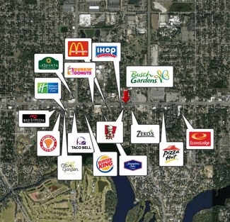 Rare Find. Corner two-story building DIRECTLY across from the Busch Gardens Theme Park main gate with grandfathered in amazing signage. This building has 2,500 sf of retail/office on the first floor and separately an additional 2500 sf of retail, office or residential living on the second floor. Over 55,000 vehicles per day pass by this corner location on Busch Blvd. Private parking as well as a fenced in rear area with a one car garage which measures +/- 300sf. Owner financing would be considered.