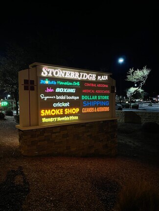 A well-maintained center with direct access to the freeway - half a mile from the US-60 - Stonebridge Center is anchored by a newly remodeled and high-traffic Safeway grocery. Surrounded by additional retail, apartments and residential neighborhoods in all directions. The center is just north of Gilbert in East Mesa at the NEC of Val Vista and Southern, and conveniently located to get to from all over the East Valley (Mesa, Gilbert, Chandler, Tempe, and Apache Junction). Stonebridge Center is owned AND managed by a local group with a strong presence all over the state - azpre.com. The center features a good mix of national, regional, and local, small businesses. Give us a call today! NEC of Val Vista & Southern