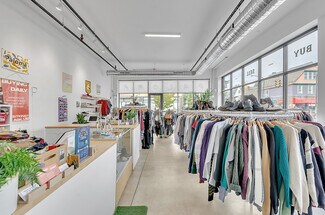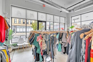 Retail storefront now available at 363 Grant Street, a stunning new-build designed by architect John Wingfelder. Most recently home to Paloma Exchange clothing store, the space is located next door to a law firm and across the street from the popular Black Dots record store, with Buffalo State University campus nearby. The space features a mostly open plan, with one ADA restroom, three dressing rooms, maintenance closet equipped with a utility sink, and entrances on both Grant and Potomac. Marked by modern design elements, such as solid concrete flooring, exposed ductwork, 14 ft ceilings, and expansive floor-to-ceiling windows, the space is ideally suited for retail or small professional office use. Monthly rent includes heating, cooling, and water expenses.