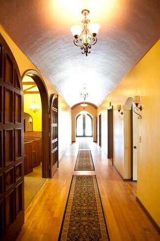 There is a grand formal entry on Telegraph Ave, and a secondary side entrance on 37th Street. The ground floor of the building has two chapels with beautiful vaulted ceilings, multiple private offices, a catering kitchen and a secondary kitchen. The second floor of the building has two separate residential units (a 2BR apt + Studio apt), plus a large home office in between the apartments. The residential floor could easily be used as a single large residence.