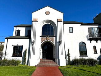 Mosswood Chapel is a former mortuary built in 1932 with 9891 square feet of total building area (per public records). The building has Spanish Mission Revival style architecture and is zoned mixed use (CN-2), with commercial use on the ground floor and accessory residential use upstairs. The property is suitable for single or multiple users.