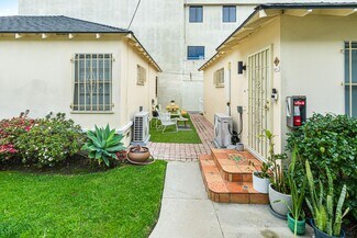 Pride of ownership four-unit building on Motor Avenue in the heart of Palms.  Three stand-alone homes, each with their own water heaters, mini split air conditioning and heating units, and washer/dryer hook-ups and a fourth unit over the rear garages.  The updated front house has two bedrooms and one bath and the unit over the garages also has two bedrooms and one bath.  The other two units each have one bedroom and one bathroom and one of the units was recently renovated.  Four garage spaces off the rear alley plus a store room that is used by the owner.  Each unit is separately metered for gas and electricity and the owner pays for water and gardener.  The lot is 7,500 square feet (50’ X 150’) to a 20’ alley and the zoning is MU-EC  (Mixed Use – Exposition Corridor), which may allow for significant development opportunities. Buyers are encouraged to check with the city of LA for more information on allowed uses, allowed maximum height, and density bonuses.  The property has a Tier 3 TOC designation.  Please do not walk the property or disturb the tenants. The units can be shown only with an accepted offer.  Individual unit square footage is approximate.