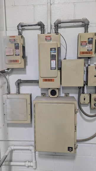 The building is fully fitted for air compression. It includes an existing compression system, paint booth, and ample power with multiple 240V three-phase services, making it well-suited for light industrial and technical operations. Upgraded LED lighting throughout enhances visibility and energy efficiency.