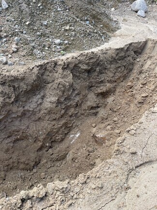 The private road is in place and the single-family is framed, enclosed, demised and waiting for a buyer to complete it. Buy it as a home, a development project or pursue approvals to extract its sand and gravel.