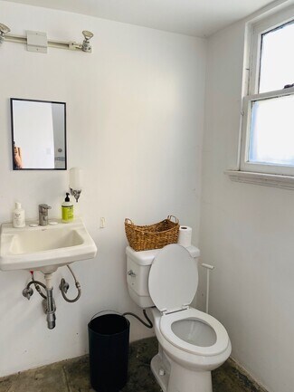This artist studio/gallery building is in immaculate condition and well suited for a creative office or retail use such as coffee shop, art gallery, clothing brand, showroom, plant or home goods store, etc... There is a large patio which is ideal for outdoor seating for customers or as an amenity to employees.