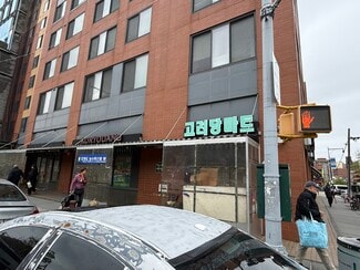 This fantastic high-visibility retail space — approximately 9,000 SF on the ground floor plus 1,400 SF in the basement — is located at a bustling intersection in the heart of Flushing. Formerly home to an established bakery and Asian supermarket, featuring: