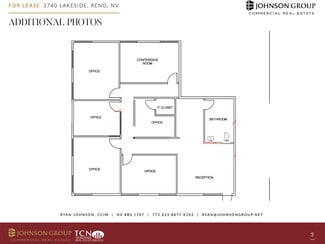 Johnson Group is please to off er 3740 Lakeside #202 for Lease. This is a 1,700 sq ft professional office space located in desirable South West Reno. The office consists of 5+ Private offices with lots of natural light. Located near the corner of Moana and Lakeside. Easy access to Freeways and McCarran Blvd.