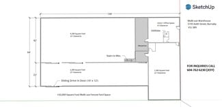 Boundary Rd. & Marine Dr. area 8,720sf building with over 10,000 sf fenced yard space. Grade loading, door 10x12" 15 ft clear in warehouse. 10,000 plus Sqft yard space, fenced. Within 8,720sf of space: Warehouse portion can be classified as 8000sf or reduced to 6,300sf Office space can be adjusted from 700sf to up to 2,760sf The warehouse space has no interior pillars Great and quick access to Vancouver, Burnaby, Airport, N. West, North Shore, Delta and Surrey. Rent Details: $12/ sf rent $8.25/sf taxes and maintenance Plus GST Contact for a viewing. Agents welcome to bring clients.