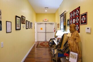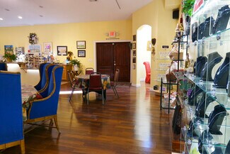 Old World Double Doors invite visitors into the tasting room & gift shop. The guests must traverse through high impulse gift items, glassware, clothing, jewelry and gift baskets. This room allows entrance into the semi-private West Tower as well as the two large, separate restrooms: