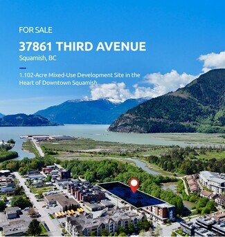 37861 Third Avenue presents a rare opportunity to acquire a large, centrally located development parcel in downtown Squamish. Spanning 1.102 acres with approximately 400 feet of frontage along Third Avenue, the property is designated Mixed Employment in the Official Community Plan, supporting up to 81,600 SF of buildable area at a 1.7 FSR. The site is currently improved with a single-storey warehouse and is ideally situated within walking distance to downtown shops, restaurants, and the Squamish Estuary trail network, offering future development the potential for exceptional view corridors toward Howe Sound and the Stawamus Chief.