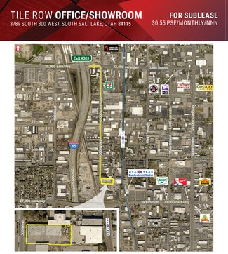This building is in a great location in south salt lake city right along the I-15 corridor. The building offers 3 phase power, dock high & ground level loading, tall ceilings, and great office layouts. The exterior of the building has just been repainted and shows well. Each office layout has ample glass and provides abundant natural light. Freeway access to both 3300 South and 4500 South within less than one minute of the site.