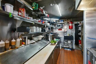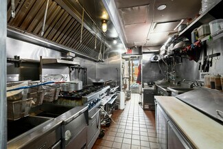Prime corner location in the heart of downtown Lynbrook. This approx 1,100 SF storefront offers an inviting indoor dining area. The fully equipped kitchen features an 11-foot commercial hood exhaust system, 4-Burner Range w/Oven, grills, multiple refrigerators, freezer, salad bar, prep space, grease trap, beverage cooler, and additional equipment/furniture to support a turnkey food operation. All kitchen equipment, TVs, and security system are available for purchase (see MLS #971559 for the storefront leasing opportunity). The incoming tenant is required to purchase the existing equipment package as part of taking over the space. Owner is offering an introductory rent of $2,200/month for the first six months, increasing to $2,700/month beginning in month seven. A fantastic opportunity to step into a ready-to-operate location and be up and running quickly in a highly visible, high-traffic downtown setting.