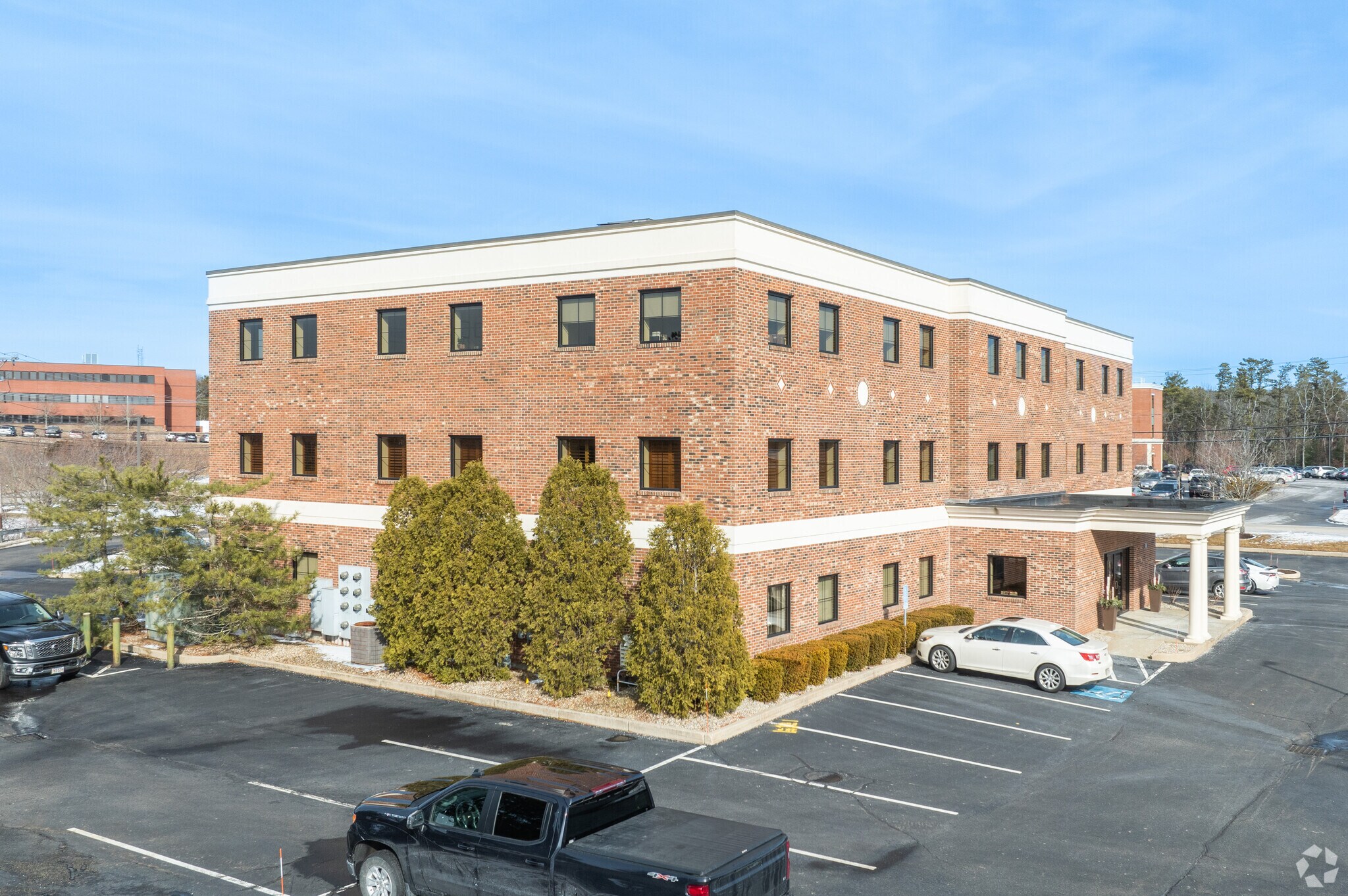 Attractive professional three story Class A office building with impressive common area and large off-street parking field.