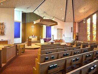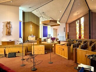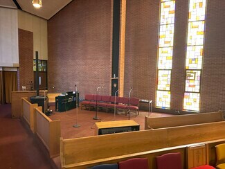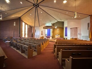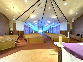 The church, totaling 21,718 square feet, offers a sanctuary, sacristy, two small offices, and storage on the main level. Although the sanctuary seats 550 in pews, the seating configuration also allows for a more intimate worship service, by using the seating that occupies the front and side areas nearer to the altar. The lower level of the church was originally built as a second worship space, complete with an altar area, room for seating, and a sacristy. The worship area has since been reconfigured into a hall, and three sizable classrooms. It could easily be restored to a huge multi-purpose room, or further divided to create additional office, meeting, or classroom space. The lower level also includes restrooms, mechanical room, storage rooms, and additional ministry space.