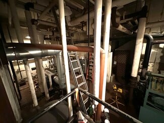 Built in 1968, of brick and precast concrete, the church has central heating and cooling, with water boiler, chiller and cooling tower serving air handlers and radiators. The building systems were operational when last used in early 2025.