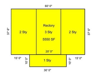 The rectory, totaling 8,520 square feet, was the former home of the priests who served the parish. Built in 1920, the four-level home includes a main kitchen, living room, numerous offices, bedrooms, bathrooms, and an upper-level kitchenette. The rectory, given its size and number of rooms, could be used for a variety of ministries: administrative offices, meeting spaces, education, youth ministry, food pantry in the basement, and so on. It could also provide an opportunity for additional revenue streams. The rectory is served by a central boiler, along with split system units, and window A/C units.