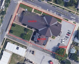 The former St Rose of Lima religious complex, at 3803 4th Street, includes 30,238 square feet comprising a church with a sanctuary, plus a large, detached rectory, a two-stall garage, and paved parking on ±0.98 acres.