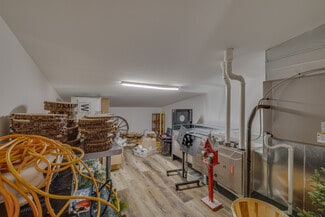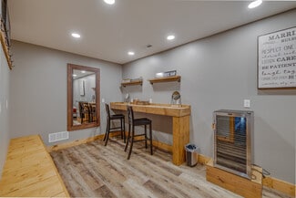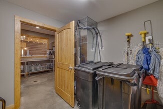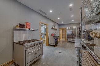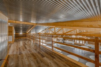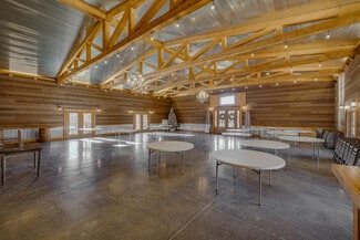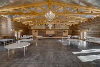 The expansive main event hall features soaring ceilings, exposed wood trusses, polished concrete floors, and warm natural finishes that create an unforgettable atmosphere. Overlooking the main event space is a loft that adds dramatic character and flexibility, complete with two dedicated storage rooms. The venue also offers a fully equipped commercial kitchen, two restrooms, two private get-ready rooms, and a dedicated utility/janitorial room designed for smooth event operations.