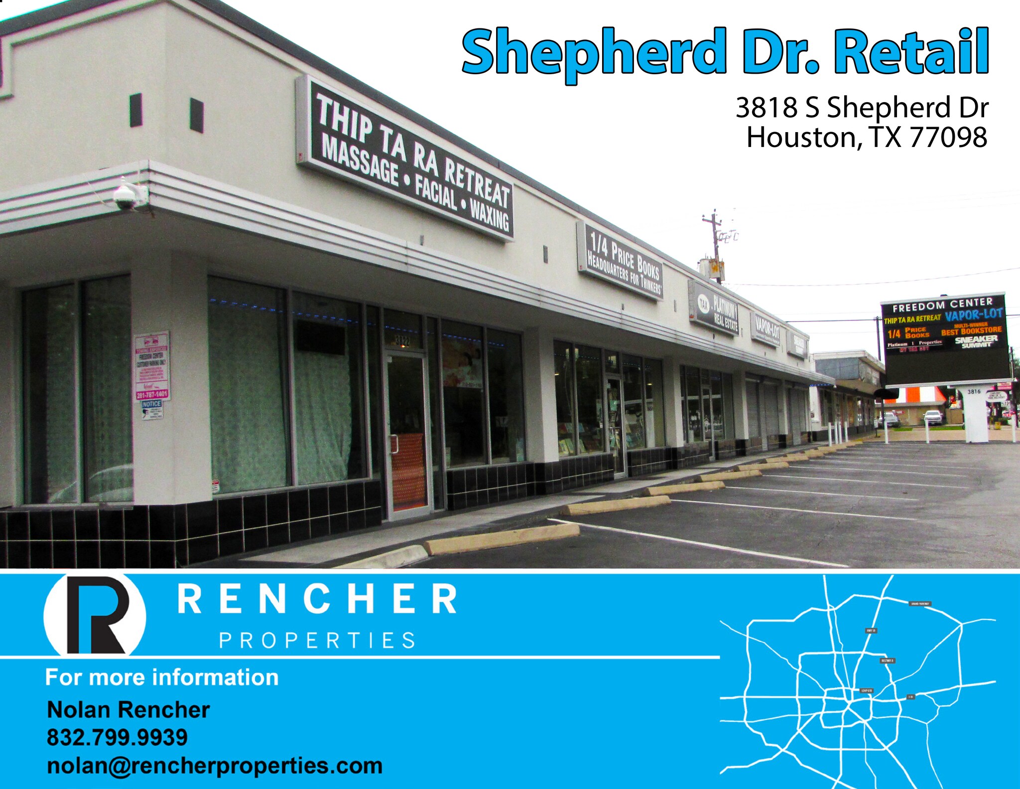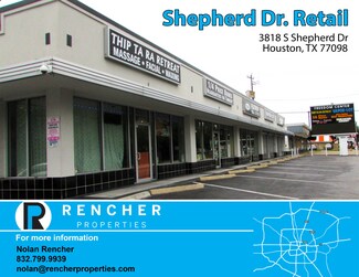 Located in the inner loop. 50 ft of frontage to S Shepherd. Approx 1200 sq ft great for tax office/ real estate office/ insurance office. High traffic flow.