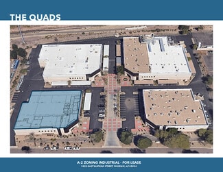 3820 E Watkins Street is a 20,432-square-foot industrial facility with between 24%-33% office space in Phoenix, Arizona. The manufacturing building offers between 23'-11" - 25'-9" feet of clear height, skylights, 40-foot by 40-foot column spacing, one grade-level 12-foot by 14-foot roll-up door, one truck well with a roll-up door, wet fire sprinklers, and 1400 amps, 277/480 volts of 3-phase heavy power. Office space comprises private offices and open bullpen space in move-in-ready condition. Additional 1,935 SF area below mezzanine with 9'10" clear ceiling height could be used for manufacturing or converted to additional office space. Sitting on 1.43 acres, this property has 44 surface parking spaces with available covered spaces and A-2 heavy industrial zoning. 3820 E Watkins Street is within a four-building industrial park, The Quads at East Bank, home to Sumitomo Chemical Advanced Technologies and Science Care Arizona Lab, placing tenants near a wealth of expertise. With superior highway connectivity, the complex is a five-minute drive from Interstate 10, which connects to Interstate 17. This facility is in the sought-after Airport Area, across from the Phoenix Sky Harbor International Airport. Logistics and manufacturing buildings dominate the surrounding area and hold a strong presence with companies like Amazon, Honeywell, and PepsiCo. 3820 E Watkins Street presents an ideal destination for businesses looking to lease a standalone industrial building within Phoenix's rapidly growing population.