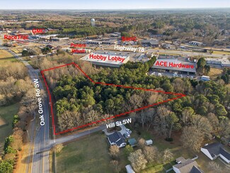 On Hard corner between Hill Street and Oak Grove Rd over +/- 550 ft of frontage on both