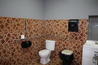 Access & Amenities: Features two bathrooms and an extra-wide 10-ft concrete ramp, allowing easy vehicle access inside the warehouse.