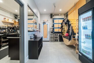 Step inside to find an open, airy layout highlighted by beautiful garage doors that not only enhance the aesthetic appeal but also invite ample natural light. This feature creates an inviting atmosphere for customers and employees alike, making it an ideal spot for dynamic interactions and innovative displays.