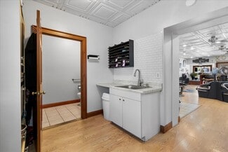 Currently set up as a salon & spa, but has many other potential uses. On the main level there are 5 style stations,2 wash stations & a large reception desk/waiting area. In the back you'll find locking cupboards, plenty of counter space, utility sink and large employee/client bathroom. Head down to the spacious basement from the main level or from a separate driveway side entrance. In the basement you'll find 3 spaces (2 private) perfect for spa services (Nail tech/Facial/Massage/Etc.). One private space includes a shower & salon sink. There is a 1/2BT, laundry closet and plumbing in place for 2 pedicure chairs. Perfect for additional rent revenue. The spacious 2BR,1BT second floor apartment offers a large kitchen with island and SS appliances, formal dinning room, laundry/mudroom combo.