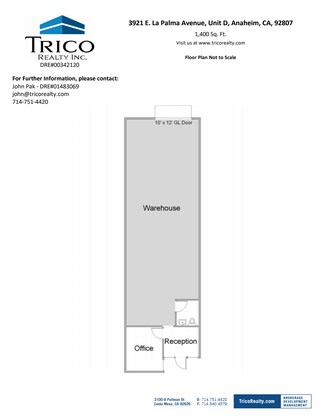 Trico La Palma Business Park is a multi-tenant industrial park located in Anaheim, CA near the 55, 57, and 91 Freeways. With major street frontage and a drive around building, it is a great home for your business. Additionally, the park offers 2:1 parking ratio and electrical of 100-200 Amps/Volts: 110/208. The exterior has recently been fully remodeled to include exterior security lighting.