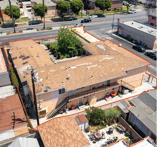 The property is comprised of two separate structures—a single-story commercial structure with one commercial unit and a two-story building with eight residential units—offering a total of 6,759 rentable square feet which also features seven carport parking spaces which may serve as potential ADU conversions. Built in 1959, the property sits on a 11,814 SF LCC2YY-zoned corner lot with street access on both sides.