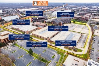 4 Overlook Point is a 31-acre campus comprising four buildings and three parking garages with approximately 2,300 parking spaces, plus additional surface parking. A two-story central pavilion building cohesively connects the campus and is ideal for corporate headquarters, with a former cafeteria and open common areas for amenities. Flanking the pavilion, Buildings A and B are virtually identical, spanning six stories with north and south wings. Each building features its own 5,000-square-foot data center. The office spaces are in excellent condition and offered by the floor, with an additional on-site data center to handle Fortune 500-level data operations.