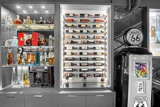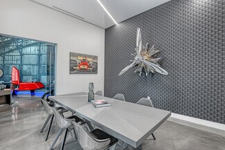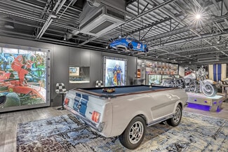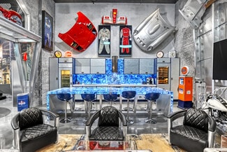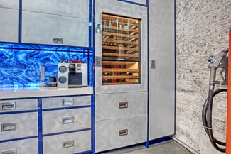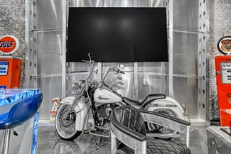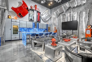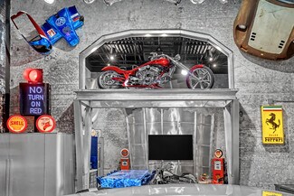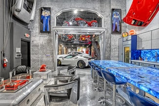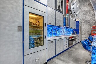 Do you want the ultimate place to entertain and showcase your exotics? This is a rare opportunity to own not one, but four hangars perfectly lined up on the runway, finished to an exceptional level. Spanning over 4,400 total square feet, the space comfortably accommodates up to seven of your prized vehicles, with the option to install up to four lifts to expand your collection even further. Four separate garage doors provide easy access, functionality, and a true showroom-style presentation. Designed with both luxury and function in mind, the hangar also includes a full bathroom with shower, along with a washer and dryer—making it fully equipped for extended stays. The main level features a full chef's kitchen highlighted by a stunning blue agate natural stone island and countertops, all backlit for a dramatic effect, along with commercial-grade Sub-Zero refrigeration and a sleek induction cooktop. Cutting-edge cabinetry is paired with aluminum and steel design elements, giving the space a bold, modern edge. Upstairs, the mezzanine takes things to another level. Designed for both entertainment and comfort, it includes a custom .357 Shelby pool table, a one-of-a-kind 737 turbine coffee table, and two built-in Murphy beds seamlessly integrated into custom cabinetry walls for overnight accommodations. A dedicated cigar humidor and custom wine storage add to the experience. The oversized eight-seat bar is finished with white agate natural backlit countertops, complemented by an ice maker and eight beer taps—perfect for hosting at scale. Three 100-inch TVs are strategically placed throughout the space, ideal for watching F1 racing or your favorite sporting events. Integrated audio runs throughout the hangar, creating the perfect atmosphere whether you're hosting or unwinding. Opportunities like this don't come around often. Reach out for more details or to schedule a private showing.