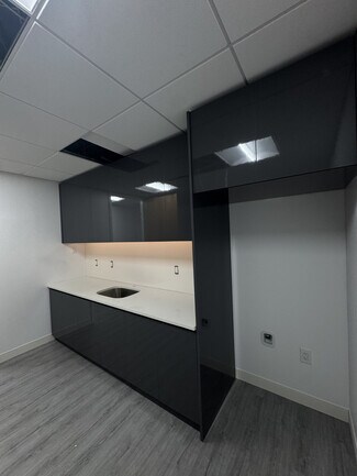A high-end buildout is underway, featuring a reception area, three private offices, an open workspace accommodating up to 22 employees in cubicles, and a pantry room. The space will include modern glass walls, motion-activated LED lighting, a new ceiling, flooring, and fresh paint.
